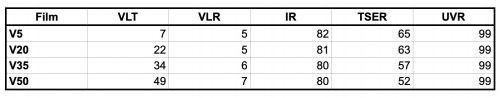 Geoshield V-NANO Automotive Window Tint Specs